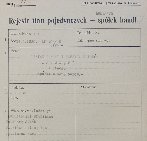 TARTAK. TARTAK PAROWY I FABRYKA BETONÓW. WŁAŚCICIELE: BRONISŁAW AUGUSTOWSKI, JAKUB GOLDBERG, STANISŁAW ŚLIWIŃSKI, BERL SPIELMANN