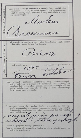 STOLARNIA I FABRYKA MEBLI "STYL". WŁAŚCICIELE: MOJŻESZ SPIELMANN, SALOMON SŰSSKIND, BRONISŁAW DŐLLINGER