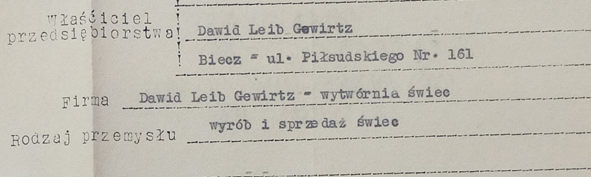 ŚWIECE. WYRÓB I SPRZEDAŻ ŚWIEC. WŁAŚCICIEL DAWID LEIB GEWŰRTZ